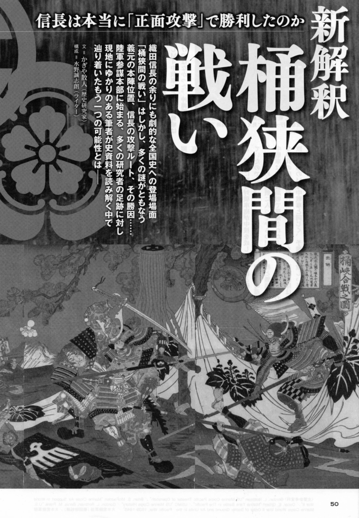 信長が天下人への道を進んでいく契機となった戦いとしてあまりに有名だが、その経過に関しては、史料によって、またその解釈によって、これまで様々な説が提示されてきた。しかし、後述するように、現在の定説に疑問を抱いてきた筆者は、桶狭間の近くに住んでいたこともあって、15年にわたって合戦の現地を取材し、史資料の研究を行ってきた。